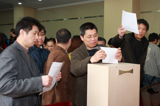 根據考核組的要求,參會人員認真填寫測評表,并進行現場投票,對我所領導班子及領導干部2012年度工作進行了民主測評。