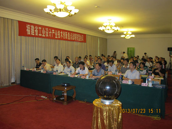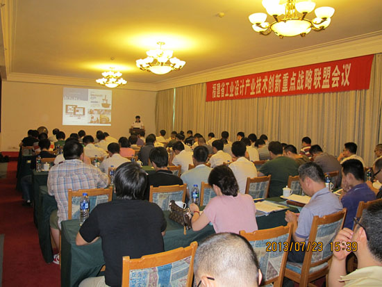 2013年7月23日下午,2013年福建省工業設計產業技術創新重點戰略聯盟會議在福州召開。福建省科技廳高新處陳建林副調研員、政策處陳偉副處長、省生產力促進中心主任朱祥枝、副主任楊志鵬及來自全省各地、各個行業的會員代表80多人參加了會議。大會由聯盟秘書長宋春華和新當選的聯盟秘書長林寧思先后主持。陳建林副調研員、陳偉副處長分別介紹了我省產業技術創新重點戰略聯盟發展現狀和相關政策解讀。