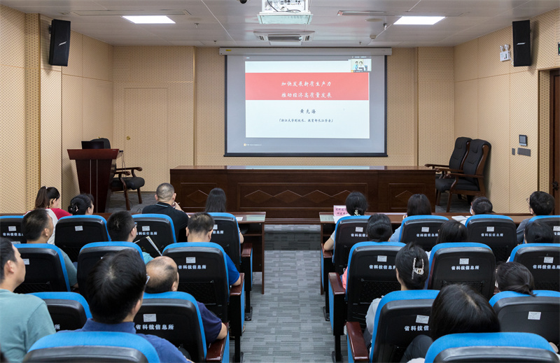 7月29日,為深入學習貫徹黨的二十屆三中全會和全國科技大會精神,進一步深化對習近平總書記關于發展新質生產力的重要論述的理解把握,我所組織全體職工參加浙江大學副校長、教育部“長江學者獎勵計劃”特聘教授黃先海作《加快發展新質生產力推動經濟高質量發展》專題輔導講座。
