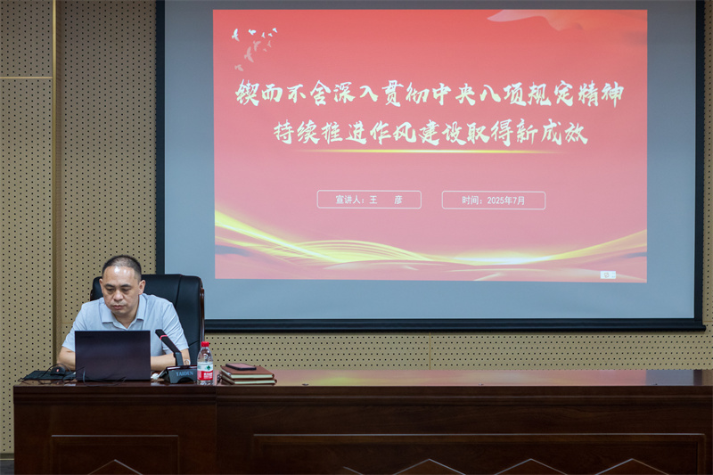 7月18日,所黨總支組織委員、第三黨支部書記、副所長王彥以《鍥而不舍深入貫徹中央八項規定精神持續推進作風建設取得新成效》為題,為其所在支部黨員及分管部門的干部職工上了一堂深刻而生動的黨課。
